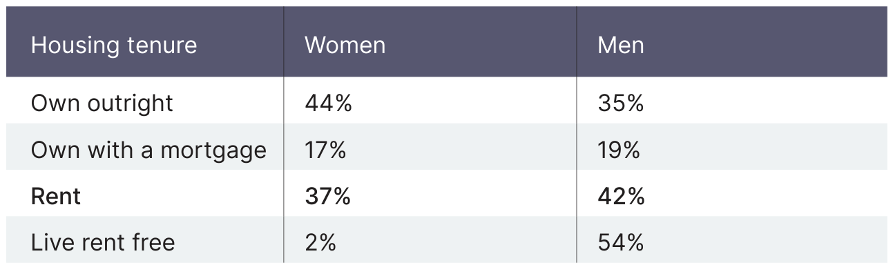 Housing tenure of divorced women and men aged 60 to 69