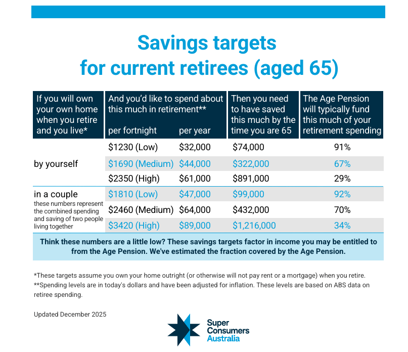 Super Consumers Australia (SCA) has updated its Retirement Savings Targets for Homeowners. These targets are the result of a research project undertaken in 2022 to better understand actual retiree behaviour across three representative household cohorts by spending patterns (Low, Medium, High) and two by partners status (Single and Couple).